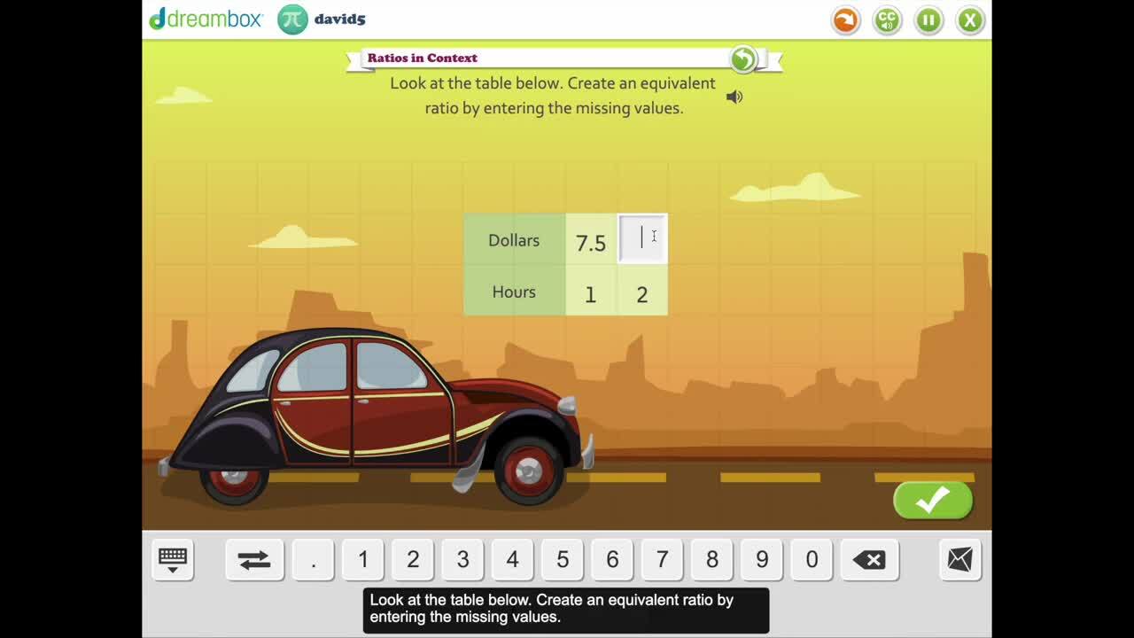 dreambox math racecourse lesson with caption screenshot